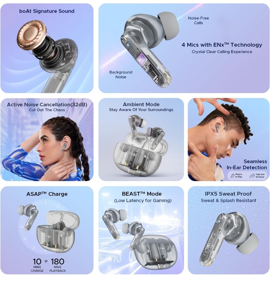 boAt Signature Sound: Dive into elevated listening when you wear your Airdopes. Thanks to the bass-rich boAt Signature Sound from the matchless drivers, you can stay engrossed in crisp audio.