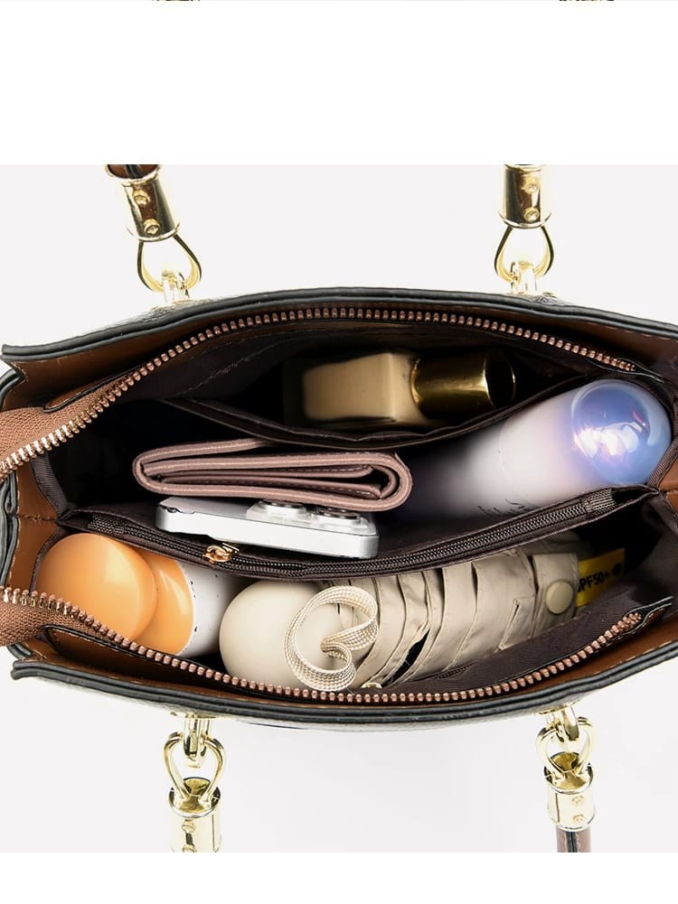 Turn heads with this sophisticated red leather handbag, crafted for those who appreciate both style and practicality. Showcasing striking brown handles and a chic gold-tone logo accent, this bag seamlessly blends elegance with everyday functionality. The spacious interior effortlessly accommodates your essentials, while the detachable shoulder strap offers flexible carrying options for busy days. Ideal for both day and evening outings, this eye-catching accessory measures approximately 30cm x 22cm x 14cm, making it the perfect statement piece for your wardrobe.