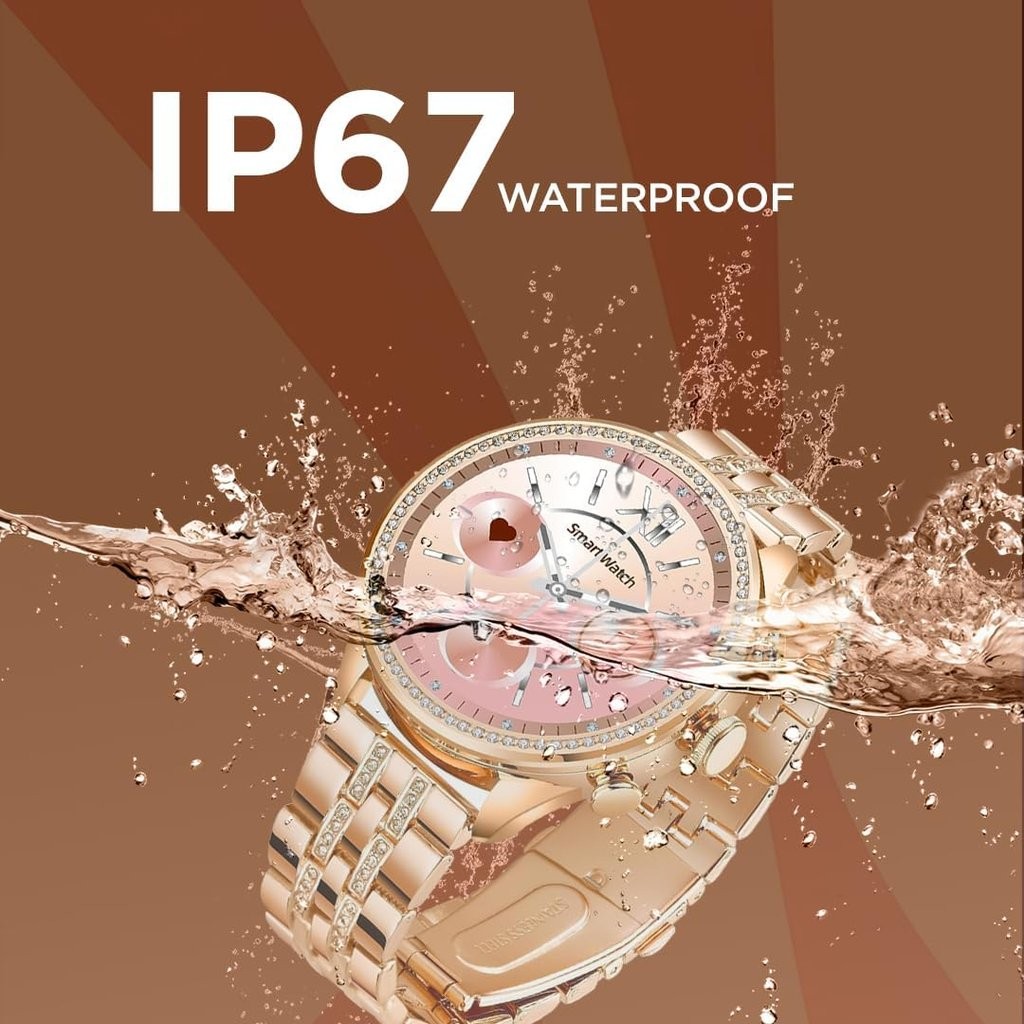 Elevate your style with this exquisite rose gold smart watch, featuring a dazzling diamond-accented bezel that effortlessly blends sophistication and modern technology. Designed to complement your feminine charm, its slim 38mm case fits comfortably on any wrist, while the adjustable rose gold strap ensures a perfect fit and enduring elegance. Enjoy a vibrant, multifunctional touchscreen display offering easy access to calls, messages, health tracking, and fitness apps—making daily life both fashionable and convenient. Perfect for any occasion, this smart watch is the ultimate accessory for those who desire a seamless blend of luxury and smart functionality.