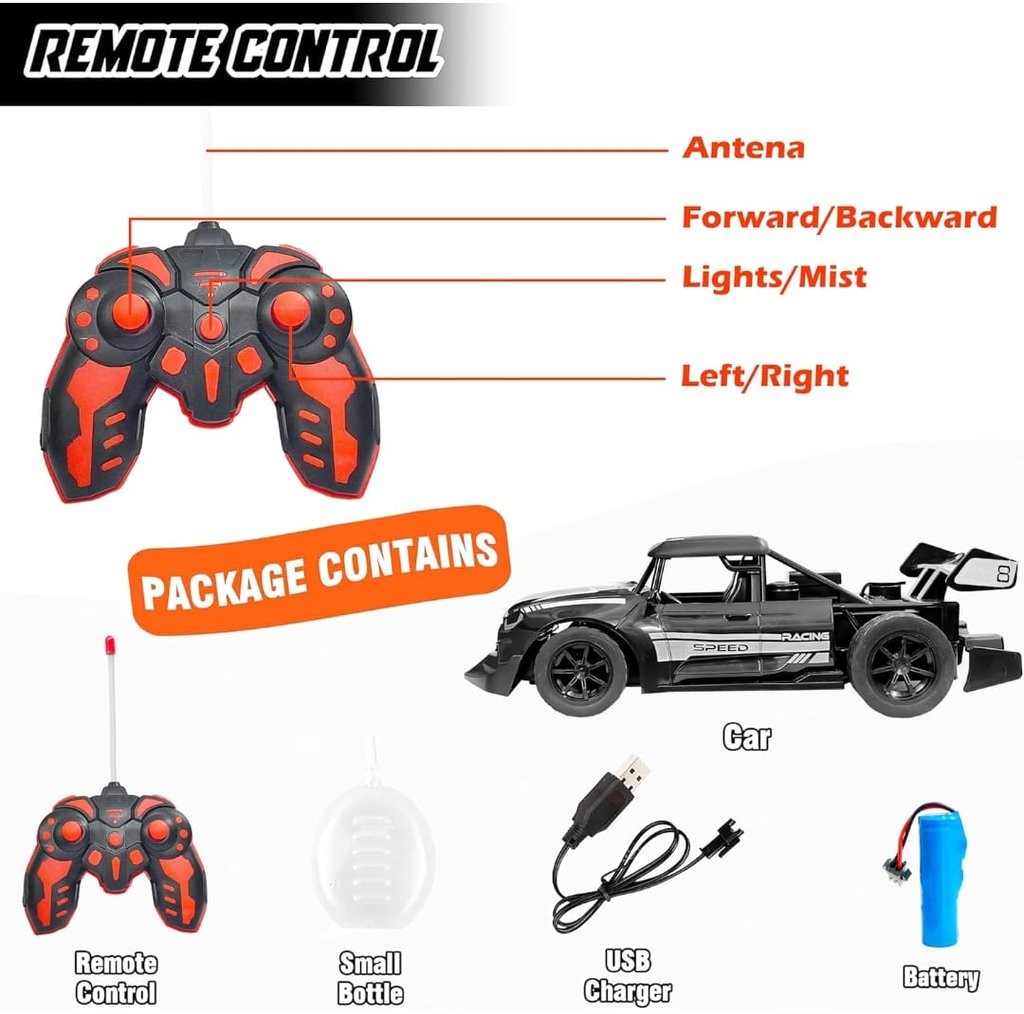 Experience high-speed thrills with our remote control turbo racing car! Finished in a bold red color, this sleek vehicle features an aerodynamic design for maximum performance, complete with intricate detailing that mimics real race cars. The set includes an easy-to-use remote controller, USB charging cable, long-lasting rechargeable battery, and a realistic smoke effect device to bring every race to life. Perfect for kids and hobbyists alike, this racing car is designed for excitement, making it an unforgettable gift. Car size: approximately 12 inches long. Get ready to ignite your racing adventures!