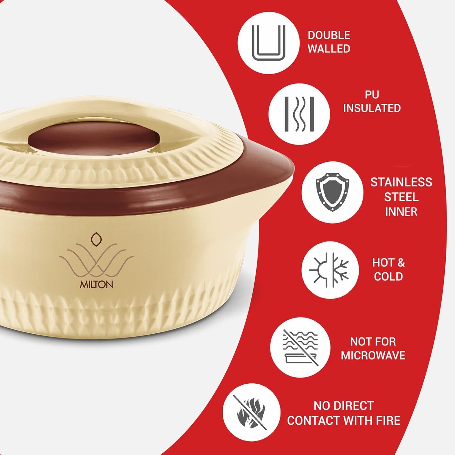 • Double walled Inner stainless steel casserole keeps food hot and fresh for hours. The refined pastel colours and the striking design elevates your dining décor and thus makes it a must-have casserole for your home.