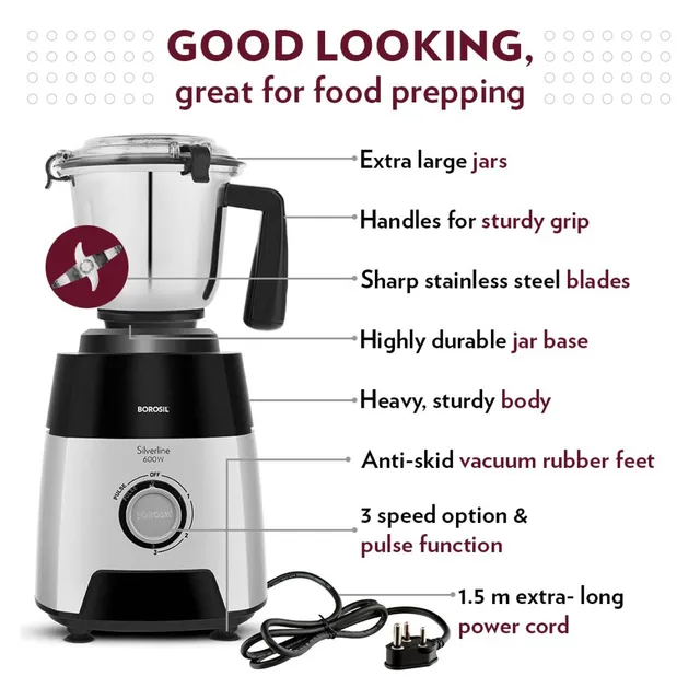 - 1.5 L blending jar with fruit filter