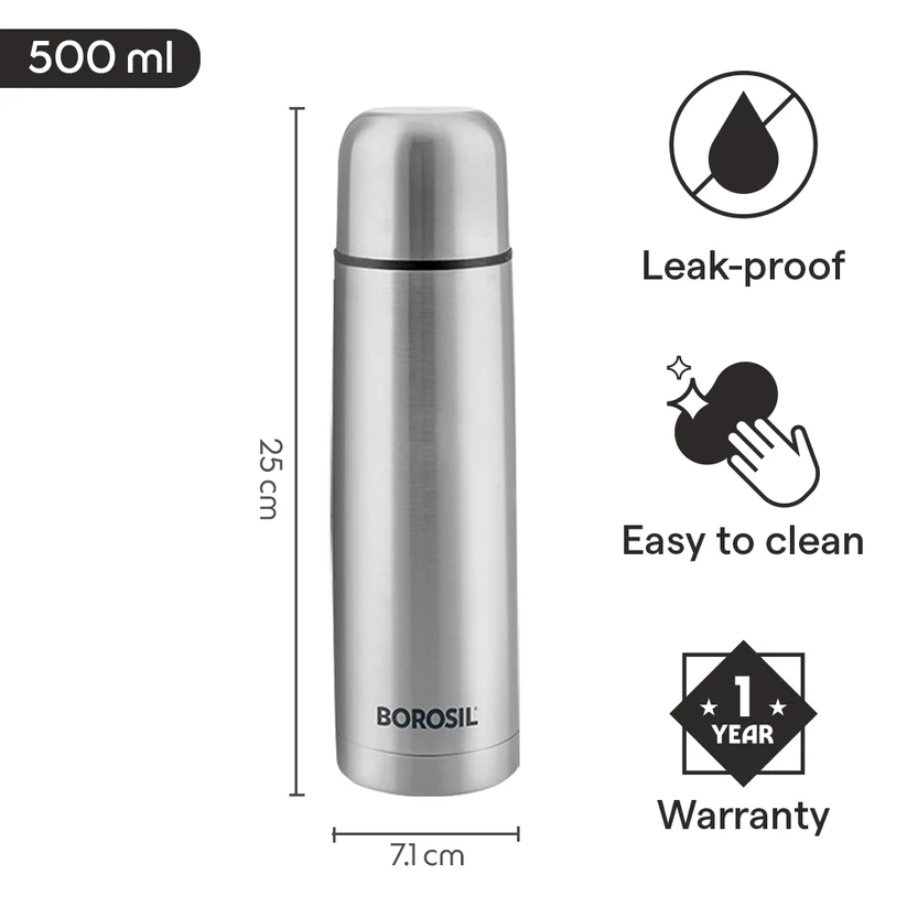 - Borosil Hydra Stainless Steel Bottles come with a one year warranty against manufacturing defects