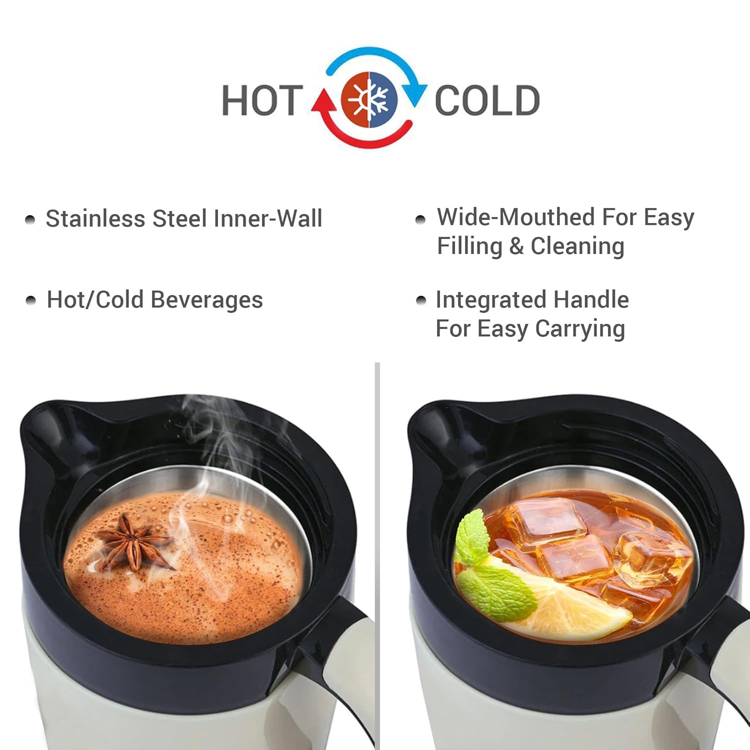 • Insulated Jug with stainless steel inner-wall, integrated handle for easy carrying. Keeps beverages hot or cold for hours. It is tightly sealed from top to bottom making it more Hygienic. Leave the lid open for some time before pouring any liquid into it.