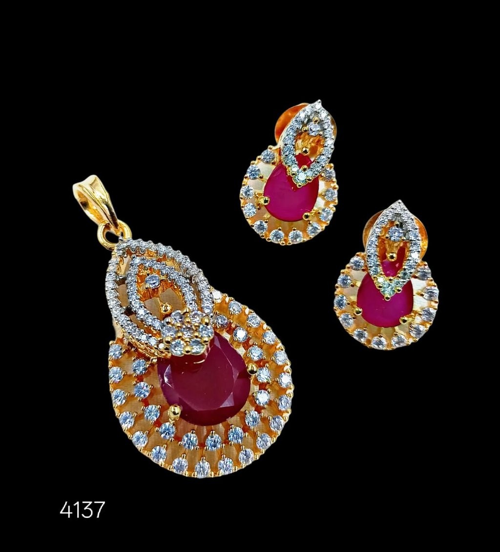 4137 AD PEDENT SA00822PB Elegant AD Pendant Set in Gold Finish