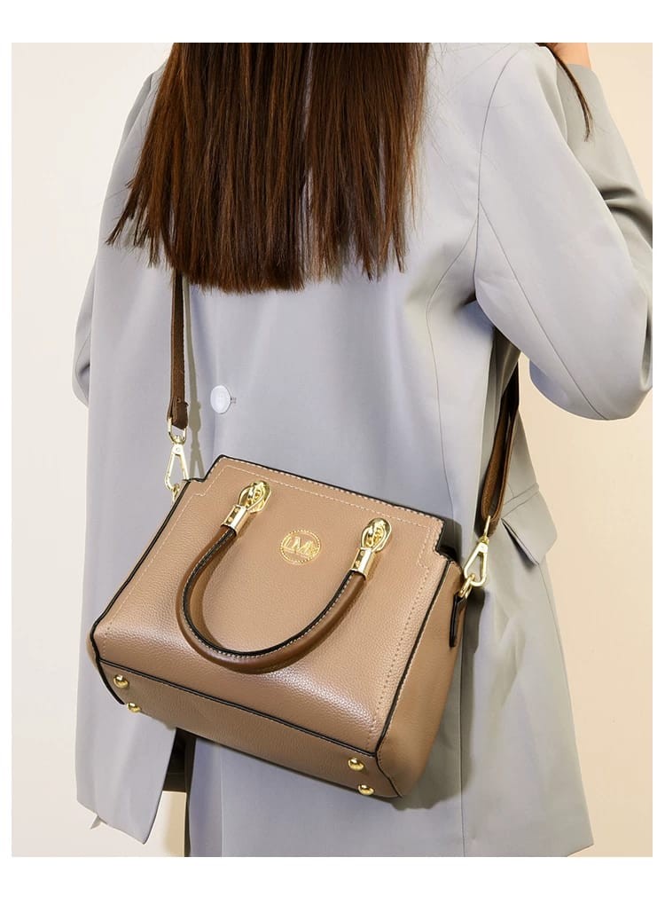 Turn heads with this sophisticated red leather handbag, crafted for those who appreciate both style and practicality. Showcasing striking brown handles and a chic gold-tone logo accent, this bag seamlessly blends elegance with everyday functionality. The spacious interior effortlessly accommodates your essentials, while the detachable shoulder strap offers flexible carrying options for busy days. Ideal for both day and evening outings, this eye-catching accessory measures approximately 30cm x 22cm x 14cm, making it the perfect statement piece for your wardrobe.