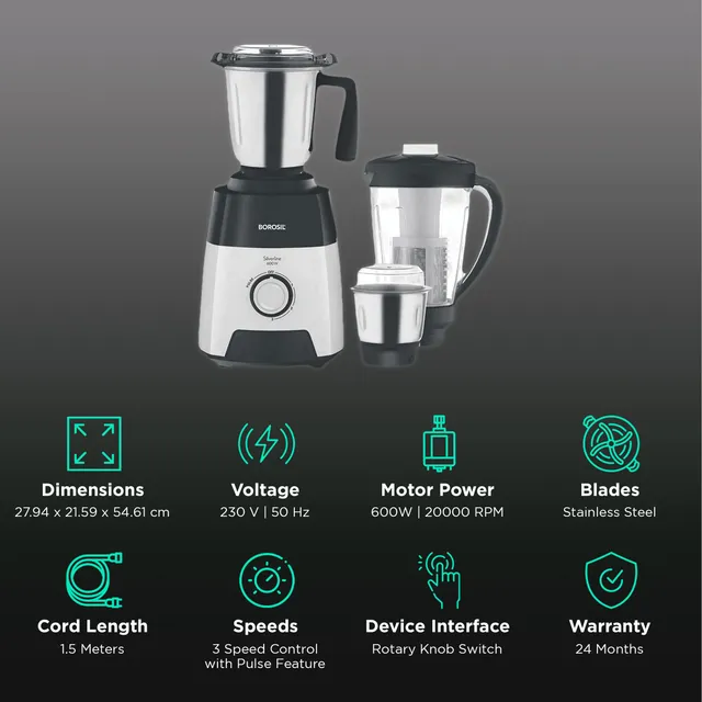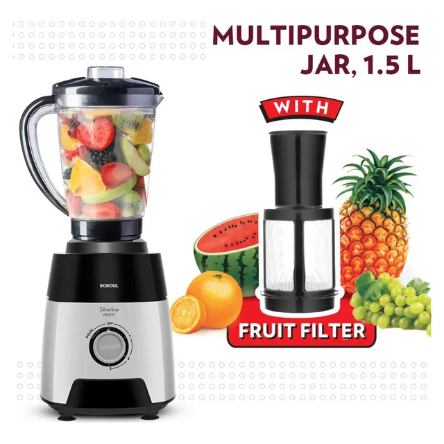 - 1.5 L blending jar with fruit filter