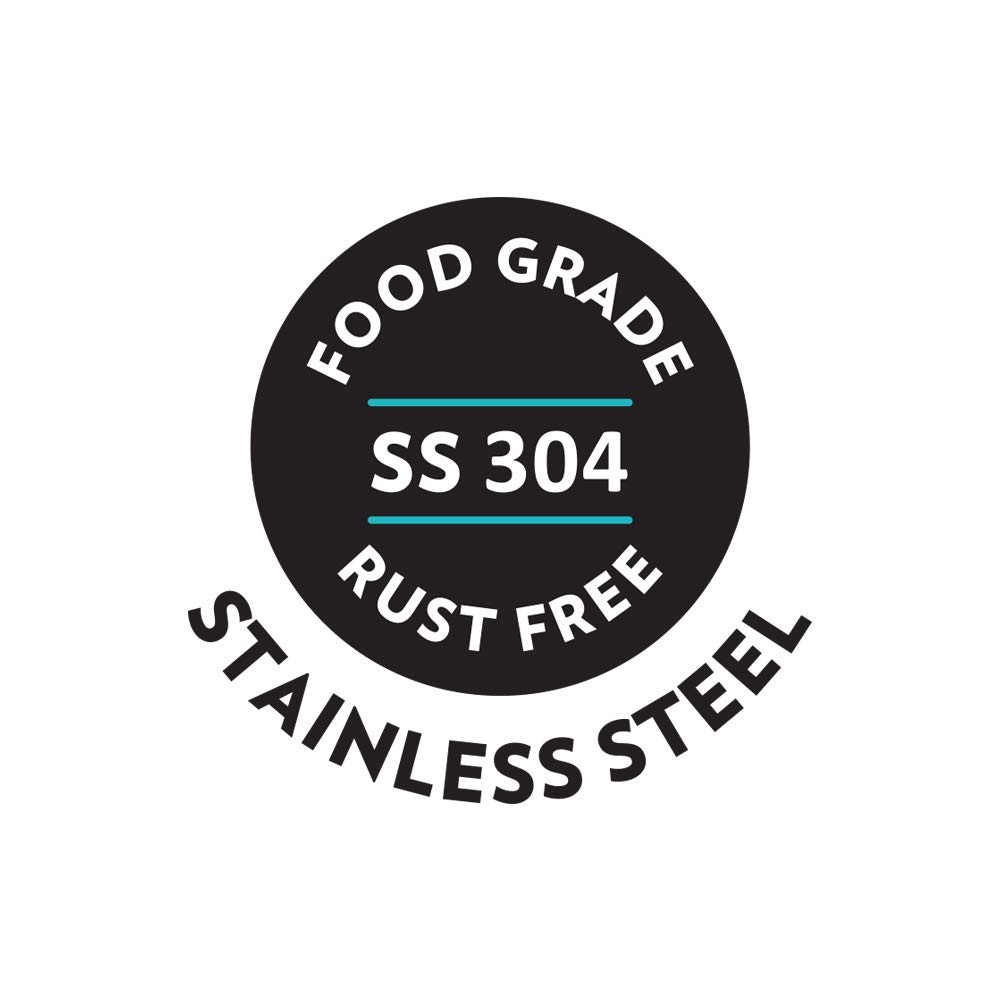• 100% food grade stainless steel both inside and outside for safety, strength and durability (18/8 quality, Grade SS304 inside and SS201 outside)